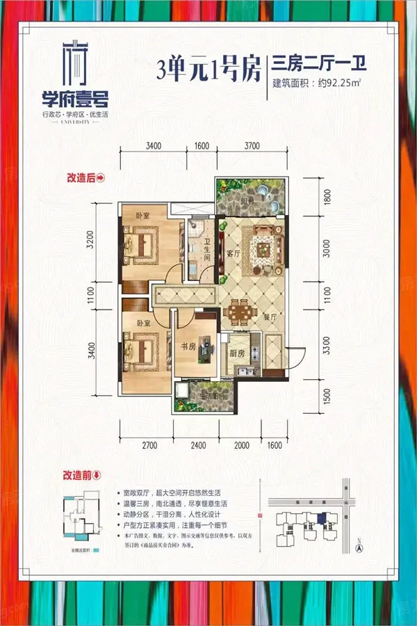 学府壹号位于桂林市临桂区金山板块临桂首师大附中对面,坐拥金山广场商圈、南城百货、金山菜市、城市便捷酒店、桂林医学院第二附属医院、银行、天下桂林步行街、临桂汽车站等醇熟生活配套,出则繁华,入则宁静。小区户型以两梯三户为主,通风采光好,南北对流,户型方正实用。