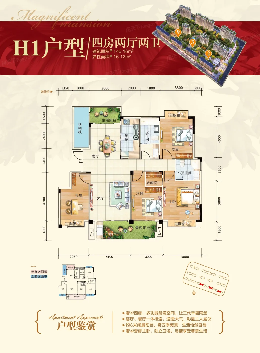 文源学府总占地85.43亩,总建筑面积22万平方米,总投资近5亿元,在全州也属于一流的规模。项目分三期开发,一期占地43.17亩,总建筑面积近10万平方米,绿化率高达36%,居住户数达1198多户。小区首创一梯两户,南北通透户型设计,有三房、四房,面积从117㎡到145㎡的各种户型都有。由18栋小高层、高层住宅以及少量商铺组成,开创全州历史上纯一梯两户电梯房,高品质花园式住宅小区之先河。户型设计紧凑实用,格局周正。所有的规划和设计都充分展示了现代人追求健康、环保与高品质的新生活理念