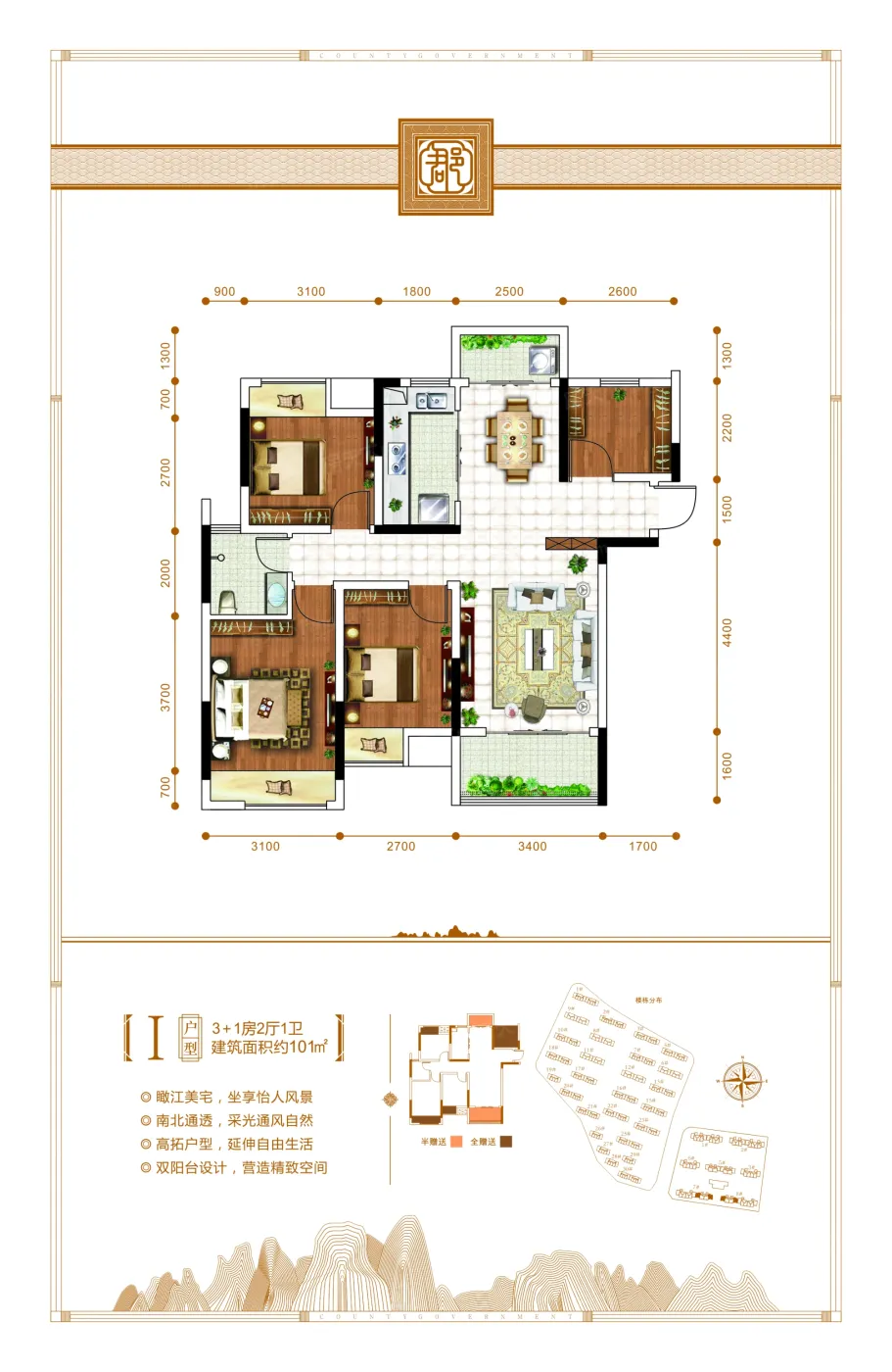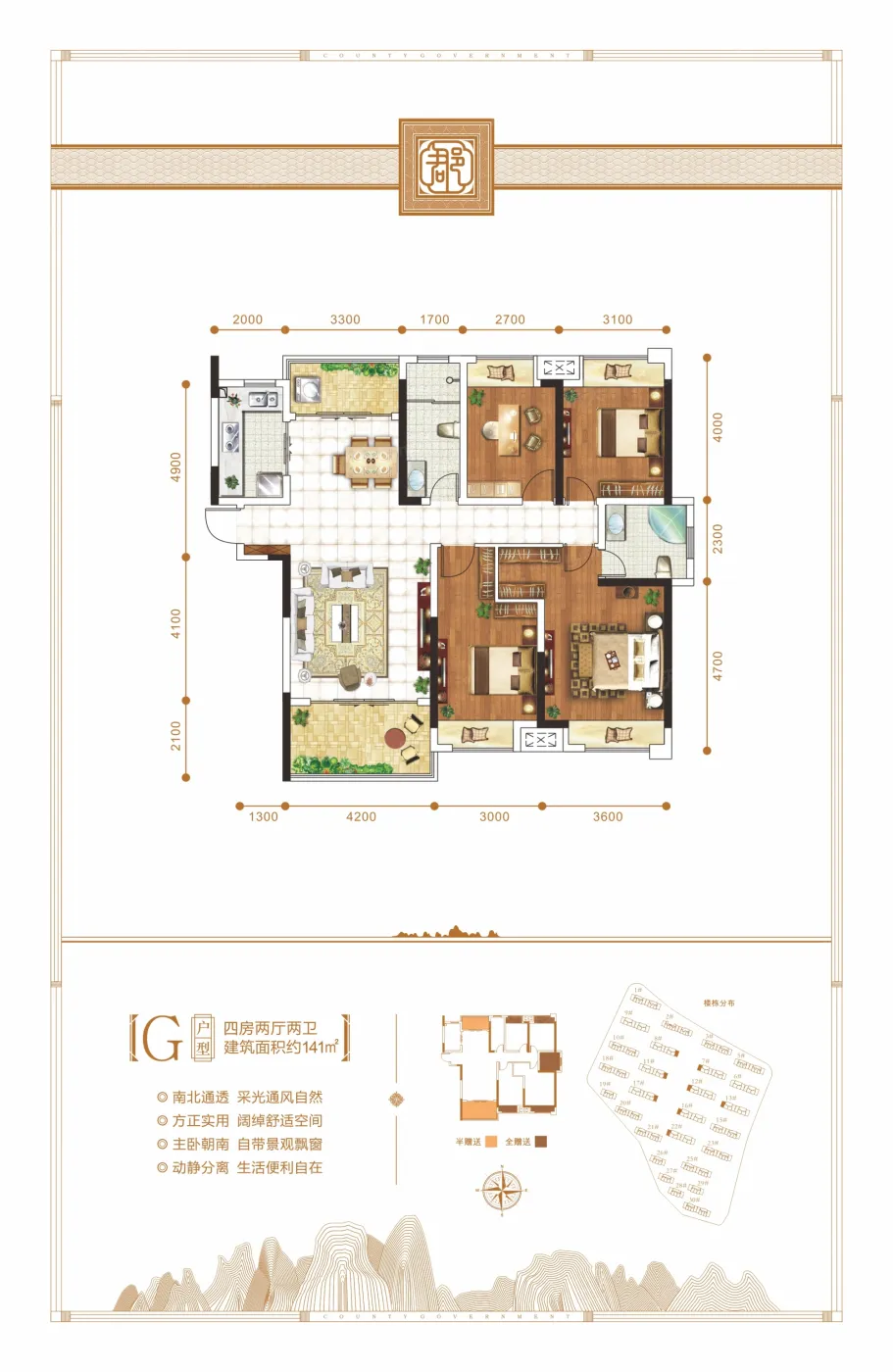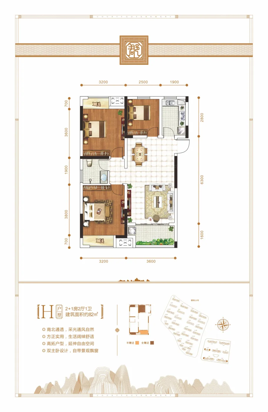 秀兰郡府位于临桂新区义宁路西城医院南侧,总占地约244亩,总建面约73万㎡,规划34栋高层、小高层。项目南侧紧邻新两江四湖及大皇山滨水公园,打造一线江景美宅,北侧距离桂林新市政府仅1.5公里,占据未来新城核心。小区内配有幼儿园、活动中心、游泳池等高端生活配套。园林采用中轴式布局,结合新中式建筑风格,典雅大气。项目率先引入地板采暖,实现全天候热水供应,纯板式建筑及创新连廊设计实现户户南北通透,极大提高居住舒适性。