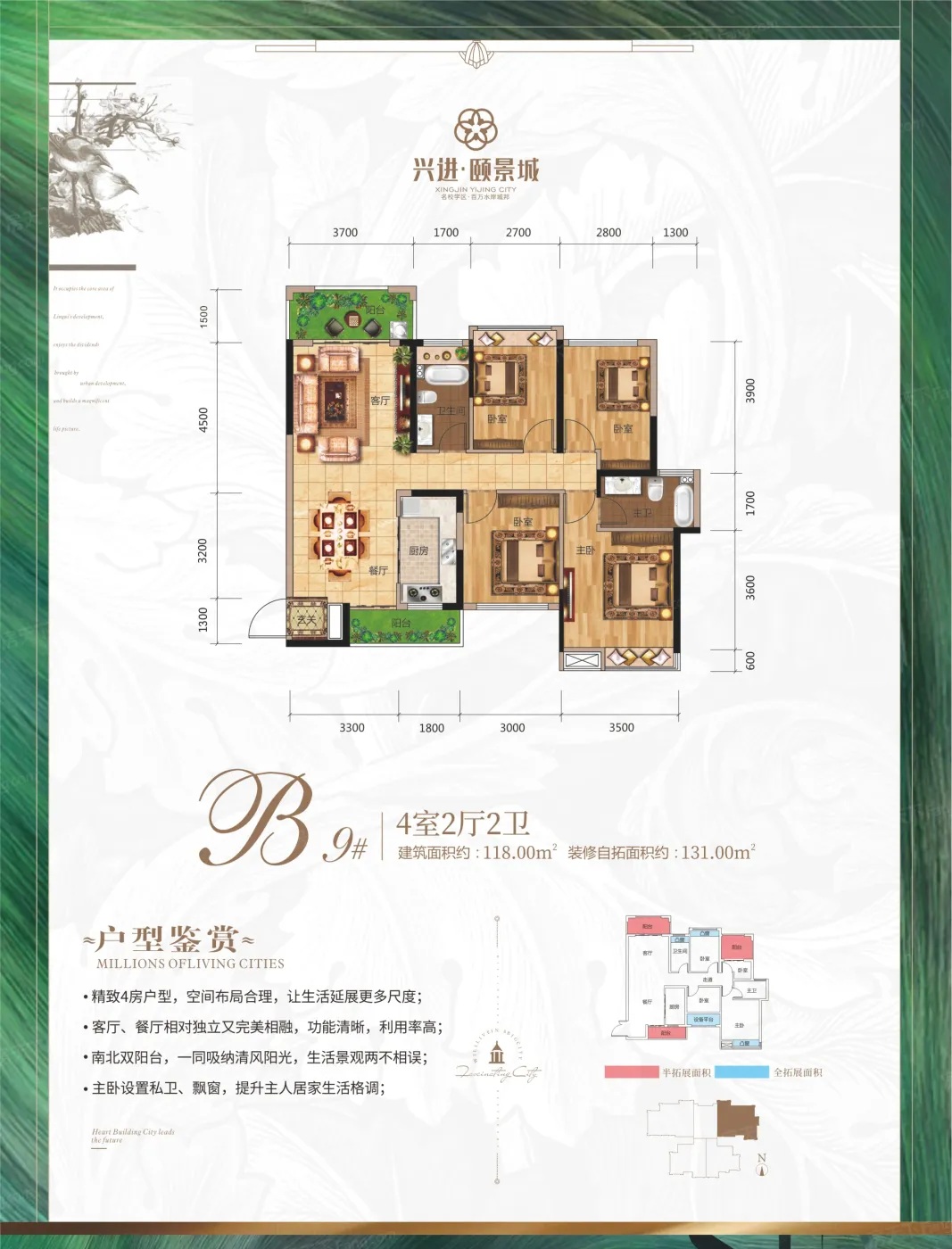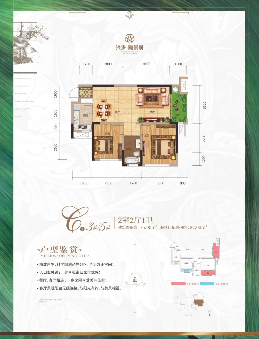 兴进颐景城为兴进集团在临桂开发第三个项目,总占地约390亩 ,总建面约116万㎡,由35栋31-35层高层景观华宅(精品公寓)组成,规划户型段为75-140㎡,二至四房主力产品,总约6800户,停车位约6500个。