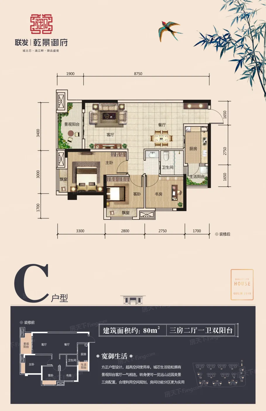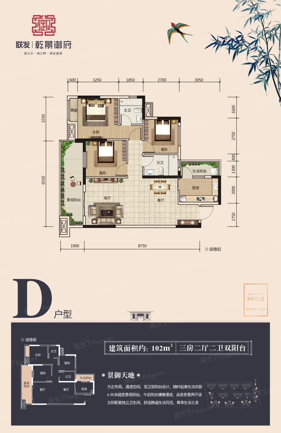 联发乾景御府项目位于桂林市叠彩区站前路南侧,属于重点打造的滨北中心区域,距离桂林北站1.3公里,距离叠彩区万达1.2公里,东向与漓江仅距离900米。项目周边配套成熟,邻近高铁站、汽车客运站,周边学校、医院较为齐全,目前周边商业氛围较浓,周边已通公交车,生活配套较为便利