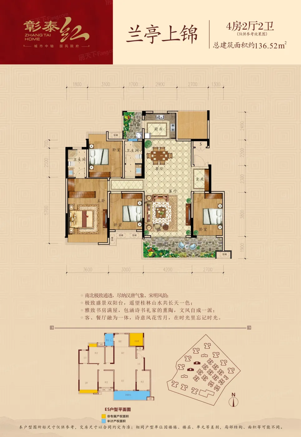 桂林彰泰红博学府项目位于临桂区临桂大道与三元路交汇处,毗邻 “一院两馆”、吾悦广场、万达广场、金茂中心以及市财政大厦、中央公园、会展中心等标志性建筑,生活配套设施完善,旁有机关幼儿园、三元中学、汇荣小学以及桂林中学临桂校区等学府环伺,成为彰泰集团打造临桂又一人居示范项目。红系产品作为彰泰“红城府郡”系列之首,承广厦奖精工荣誉,打造2.5低密贵胄府邸,产品类型包含100-132㎡高层产品等,约6.8米超大阳台,约270°大角度飘窗,无视线遮挡的舒适社区生活环境再掀红系热潮。
